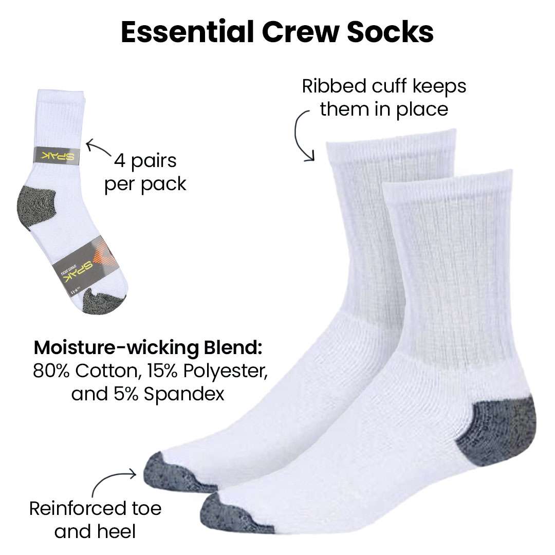 These men's crew sports socks are made with soft breathable and stretchy fabric for a more comfortable wear. The white cotton blend socks have a ribbed cuff to keep them in place.