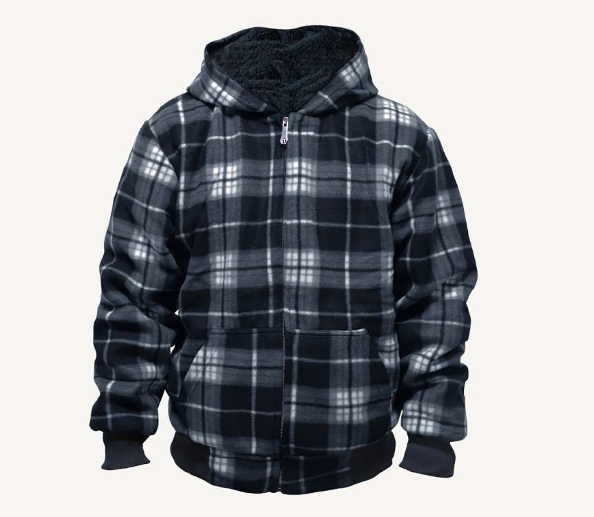 Men's Plaid Sherpa Lined Full Zip Hoodie features a soft sherpa lining for added warmth and comfort. Ideal for layering in cooler weather, this hoodie suits personal wear, bulk donations, or outfitting staff and volunteers. The full zip design and assorted plaid styles boost versatility and appeal. Shop in bulk and save today!