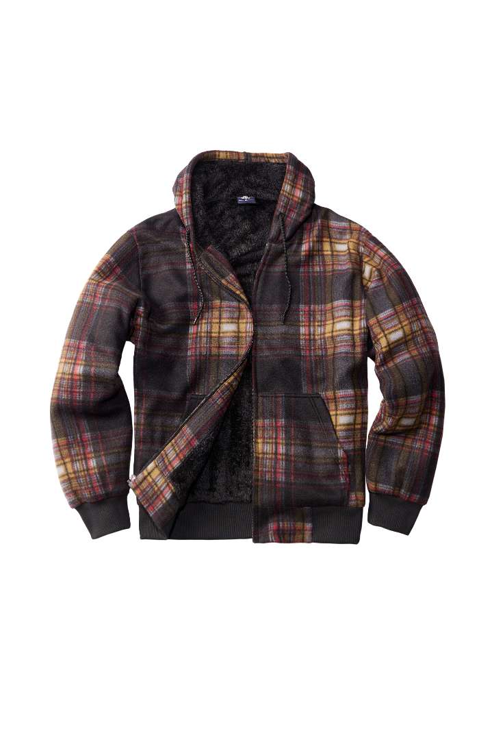 • Plaid Sherpa Lined Full Zip Hoodies, S-2XL
