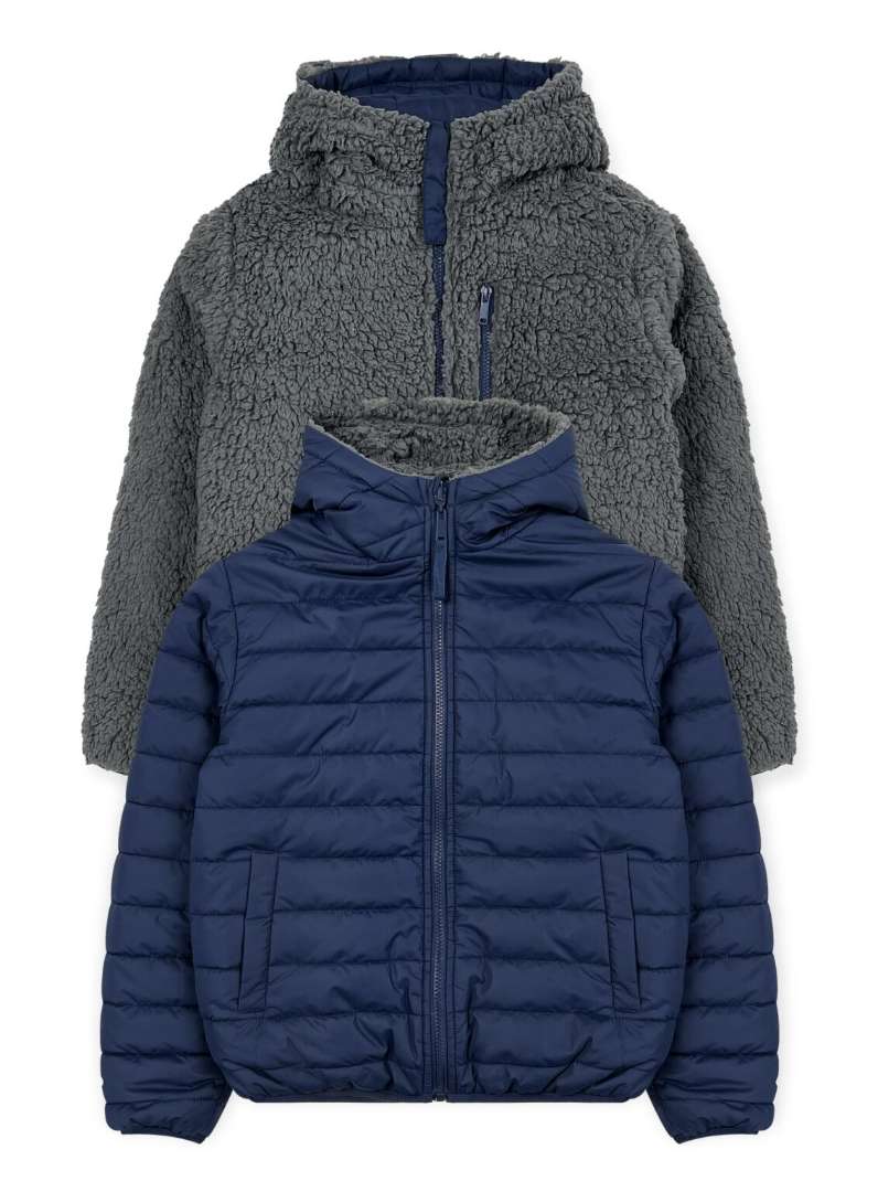 Boys' Sherpa Lined Reversible Jacket - Navy, 4-7