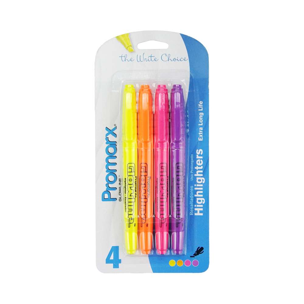 Stock up on school, office and home supplies with these bold highlighters. Each pack contains four highlighters in various colors.