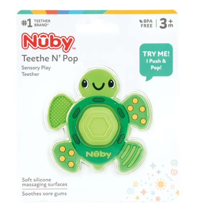 These Nuby Teethe N' Pop Sensory Play Teethers are made of soft silicone and features gentle massaging surfaces that soothe babies' sensitive gums as they teethe. Shop baby supplies wholesale and save.