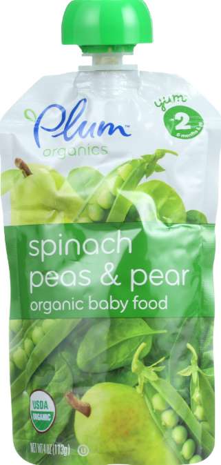 - Includes organic spinach, peas, and pears for nutrition