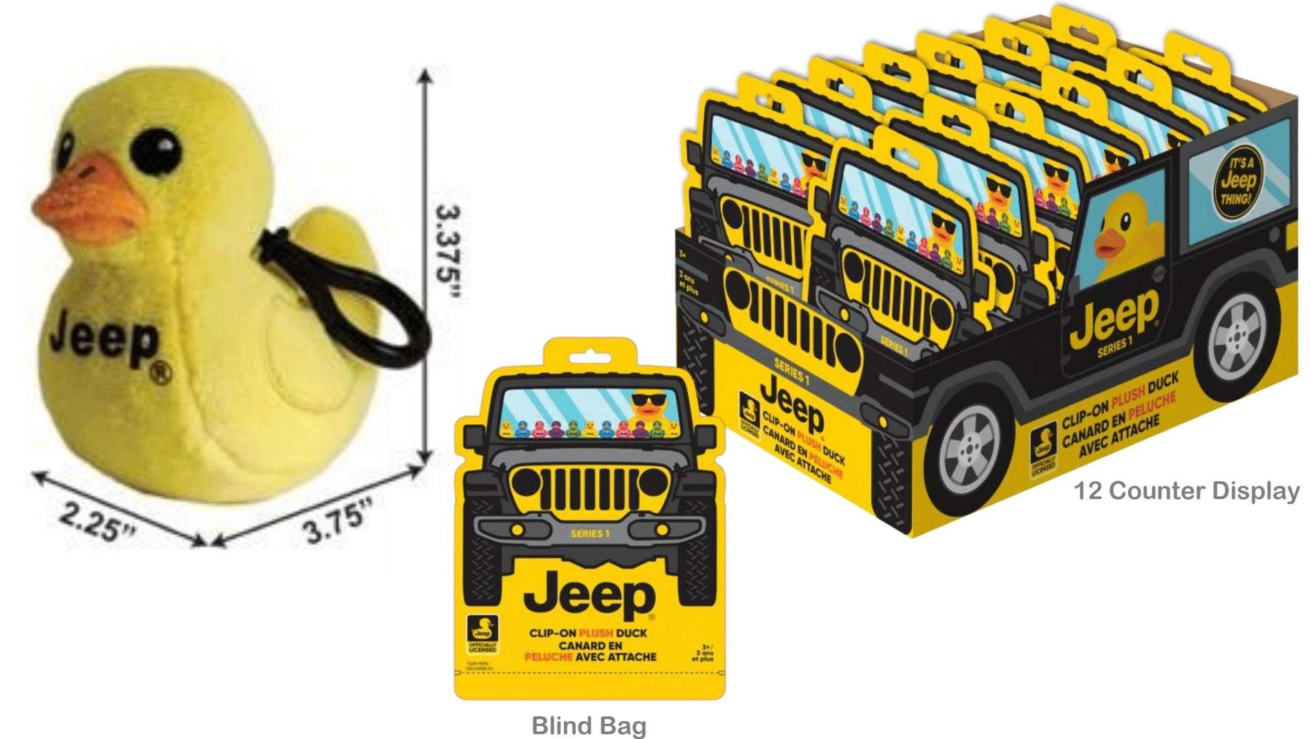 Meet the officially licensed plush Jeep Ducks--the perfect way to share the Jeep spirit! Collect them all or spread the fun by "ducking" other Jeeps. These quirky plush ducks bring smiles and adventure wherever they go. Whether on your dash or someone else's, Jeep Ducks make every ride a little wilder!
