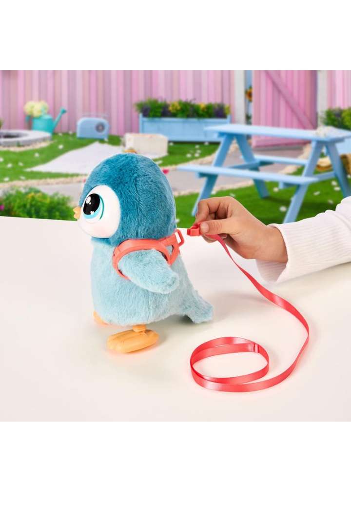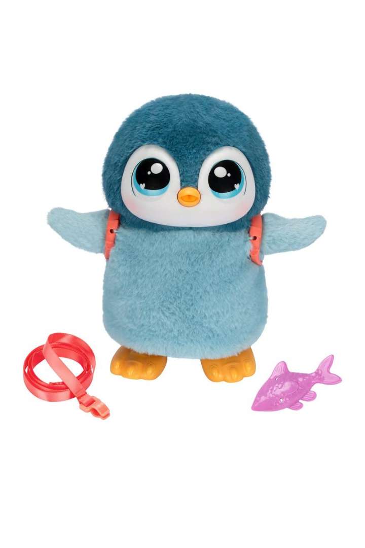 My Walking Penguin Waddles and has over 25 sounds and reactions. Pat Waddles on the head and watch his wings flap, feed him with his feeding fish, or watch him dance and walk on his leash! Complete with a detachable walking leash, a feeding fish and an instruction booklet. Batteries are included.