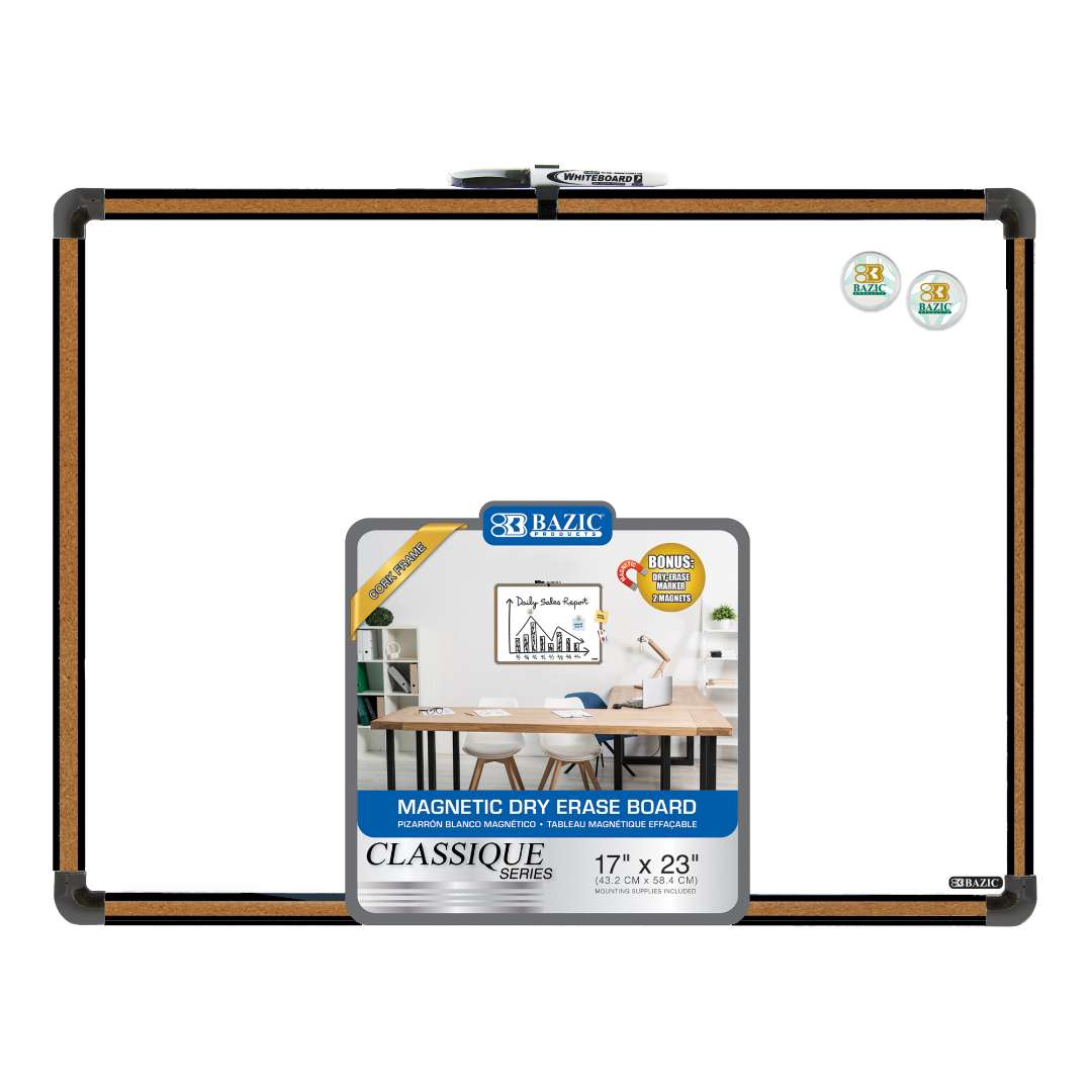 These magnetic dry erase boards are a great way to stay on top of daily assignments, tasks, chores, and more. The cork frame with a black border not only enhances the board's aesthetics but also allows for the hanging of papers using push pins.