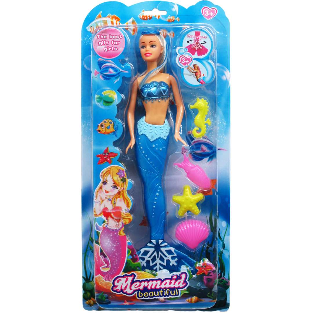 Kid's will have fun under the sea adventures with the beautiful mermaid dolls. They come with four fun accessories and are 14" tall.