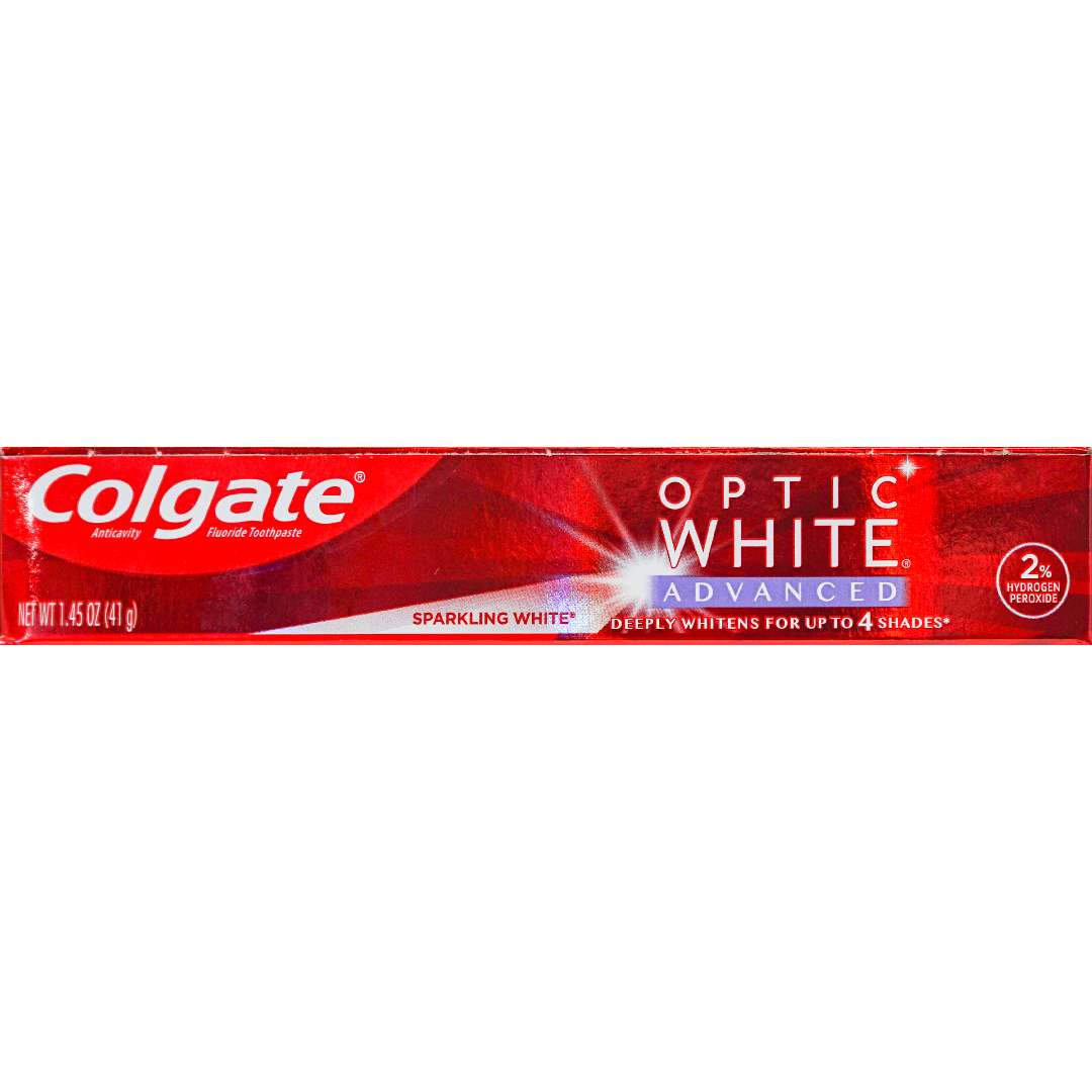 Colgate Optic White Toothpaste is an anticavity toothpaste made with fluoride to help fight cavities. Each travel sized hydrogen peroxide toothpaste uses a patented 2% hydrogen peroxide formula that is enamel-safe to whiten beyond surface stains.