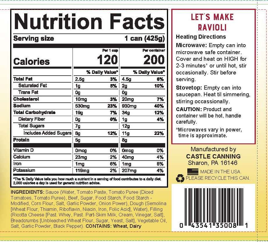 Hearty ravioli with beef in rich tomato sauce. Each can is 15 oz for a satisfying meal. Ideal for food donations, food programs, or organizations seeking bulk shelf-stable food supplies.