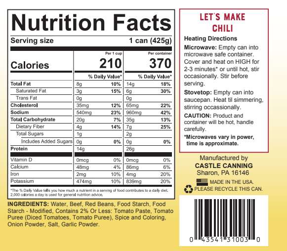 Hearty canned chili with beans in a rich, savory sauce. Each can is 15 oz for a satisfying meal. Ideal for food donations, food programs, or organizations seeking bulk shelf-stable food supplies.