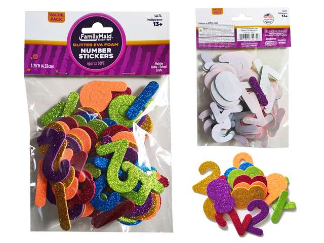 The foam number stickers with glitter are great for craft projects as well as teaching kids numbers in a creative way. They are perfect for home and after school programs. Buy in bulk and save!