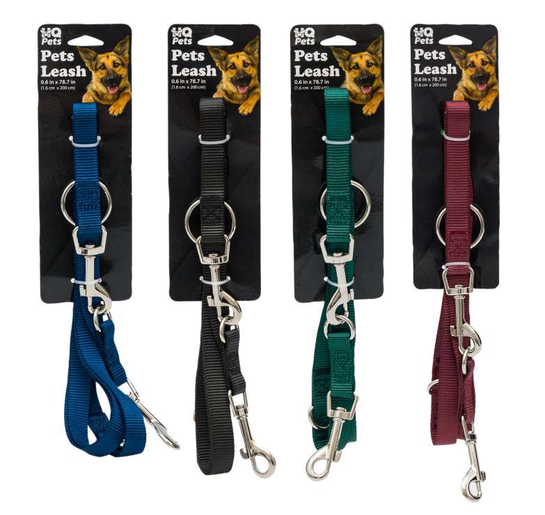 Medium dog leashes designed for strength and comfort. Measuring 0.6 x 78.7 inches, these leashes offer reliable control and come in assorted colors: Blue, Green, Red, and Black. Perfect for daily walks and secure handling.
