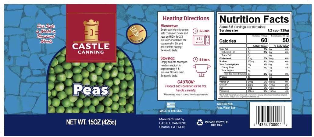 Enjoy low-sodium canned peas as a side dish, ready to heat and serve for quick, delicious food anytime. Each can is 15 oz for a satisfying meal. Ideal for food donations, food programs, or organizations seeking bulk shelf-stable food supplies.