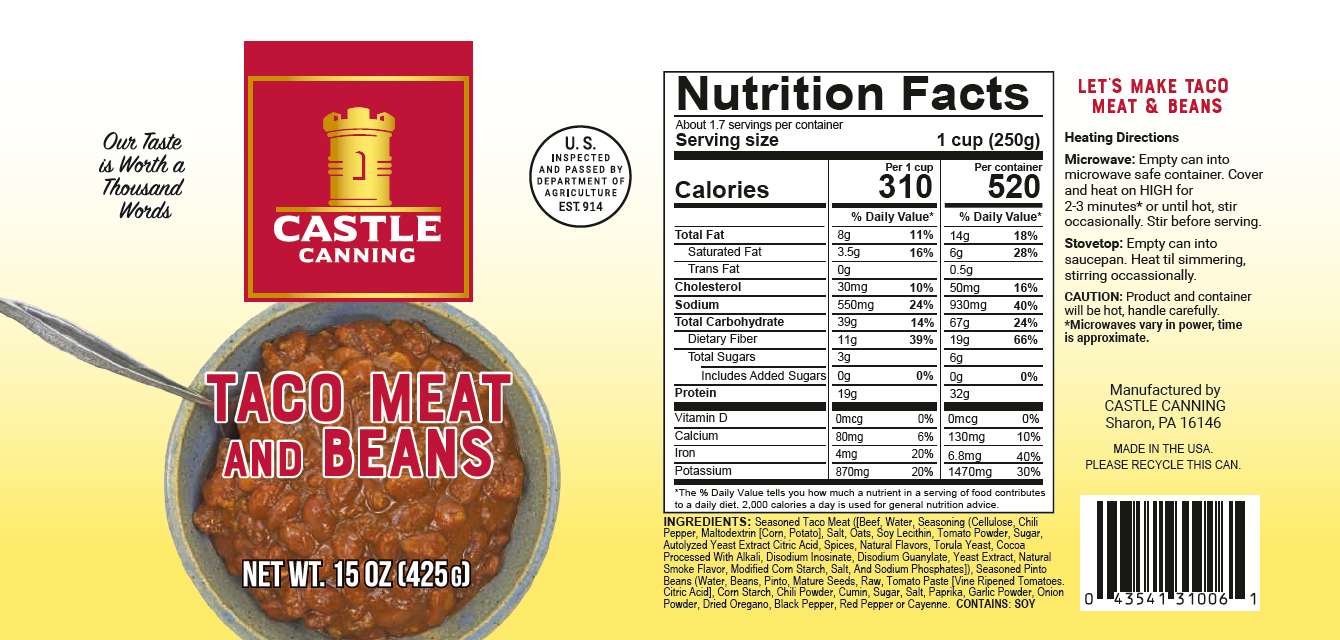 Enjoy Taco Meat and Beans as a side dish or meal. Ready to heat and serve for quick, delicious food anytime. Each can is 15 oz for a satisfying meal. Ideal for food donations, food programs, or organizations seeking bulk shelf-stable food supplies.