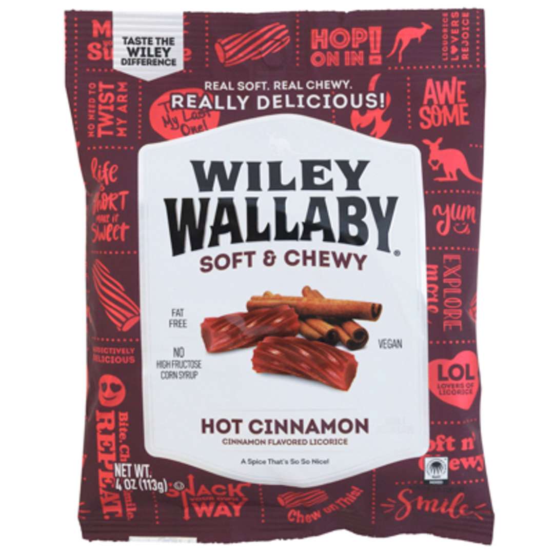 Experience the rich, intense flavor of Wiley Wallaby Hot Cinnamon Licorice. Each chewy piece is a pure licorice indulgence that's perfect for candy lovers.