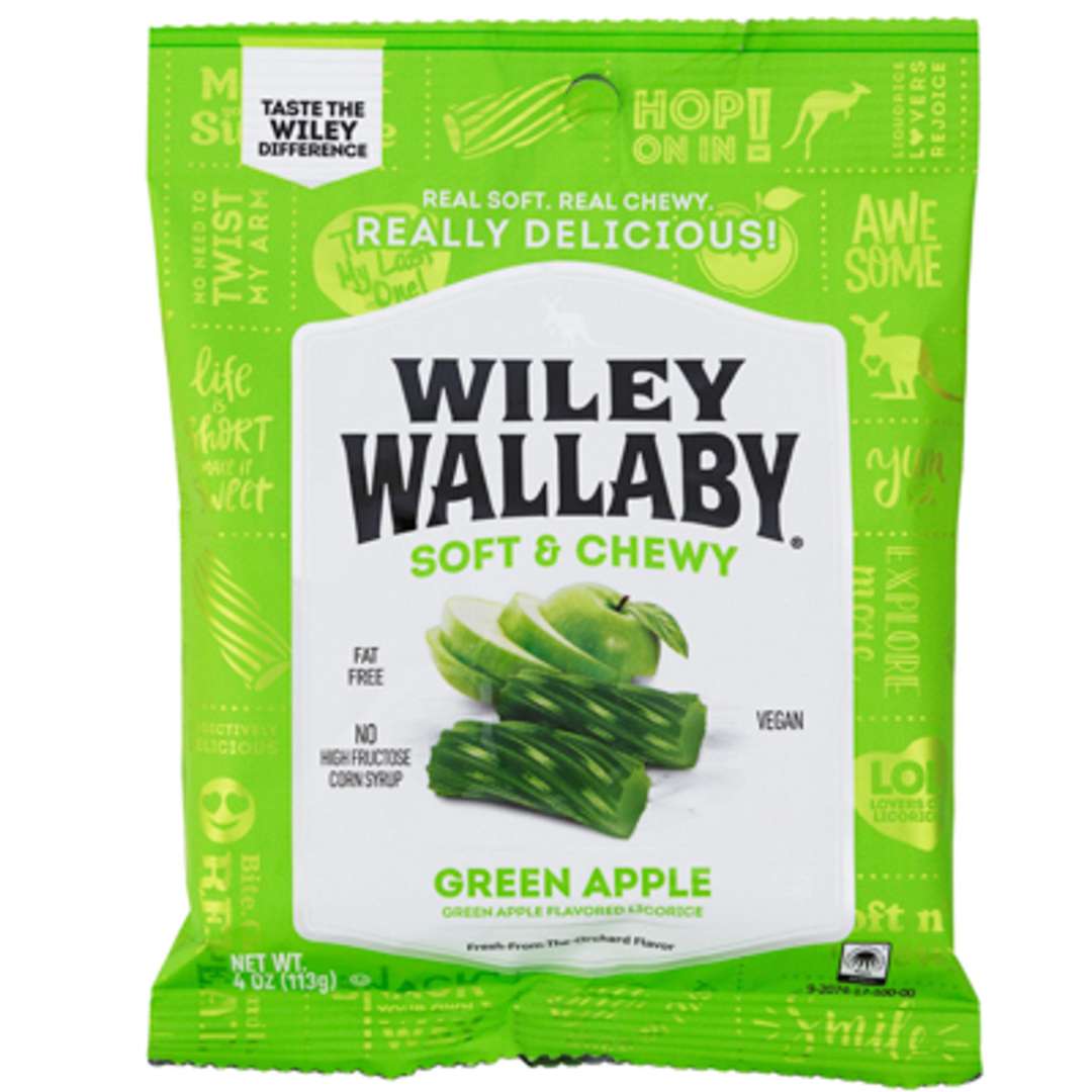 Experience the rich, intense flavor of Wiley Wallaby Green Apple Licorice. Each chewy piece is a pure licorice indulgence that's perfect for candy lovers.