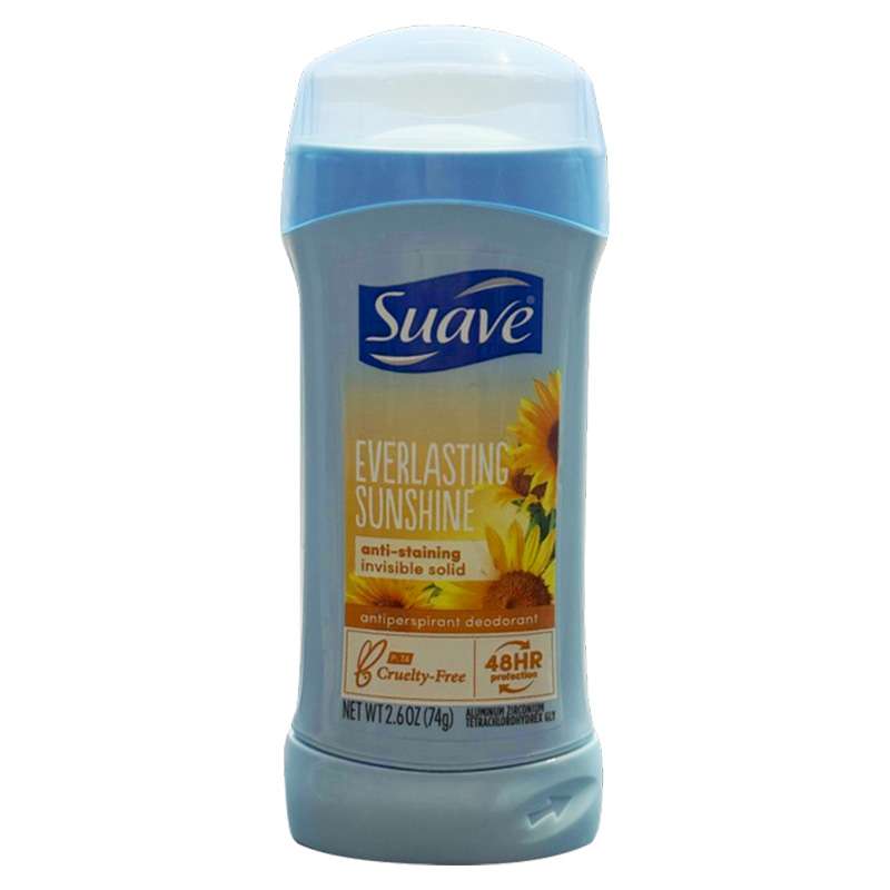 Each Suave Everlasting Sunshine deodorant protects against sweat and odor for 48 hours. The light mango and vanilla scent is refreshing and the invisible solid formula goes on clear and prevents stains. Buy bulk full size deodorant and save!