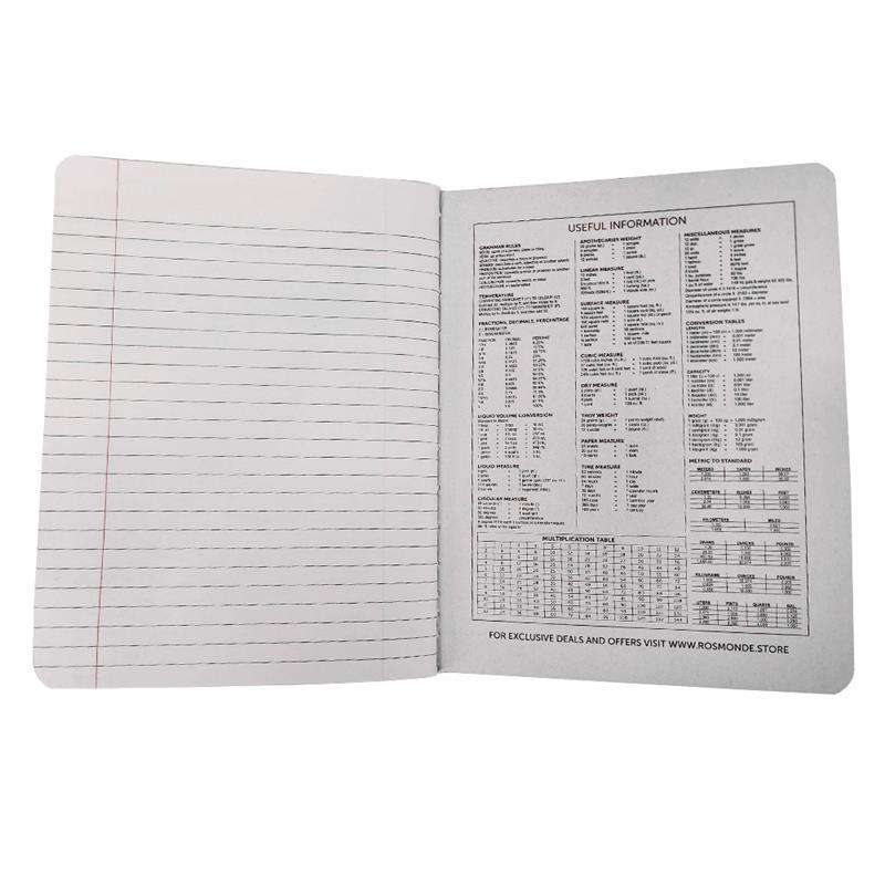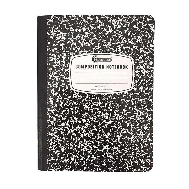 This wide-ruled composition notebook features a classic black marble cover and center-sewn binding for durability. Measuring 9.7" x 7.5", it includes 100 sheets of smooth 56 GSM paper perfect for classroom or everyday writing.