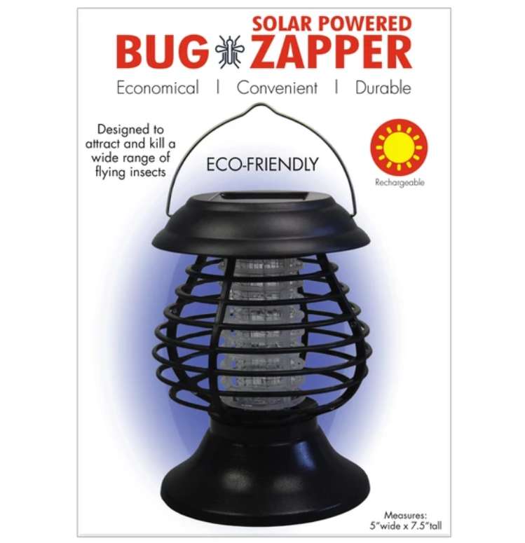 - Solar-powered light and zapper combo, lantern style