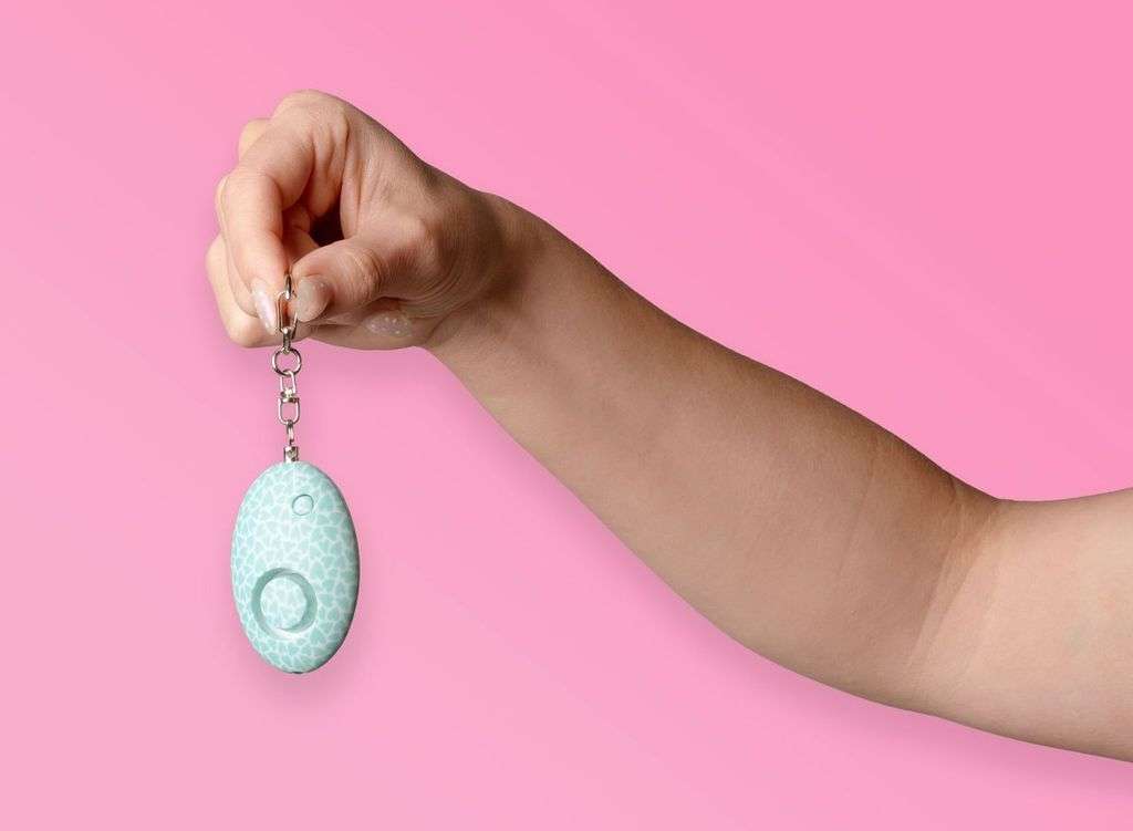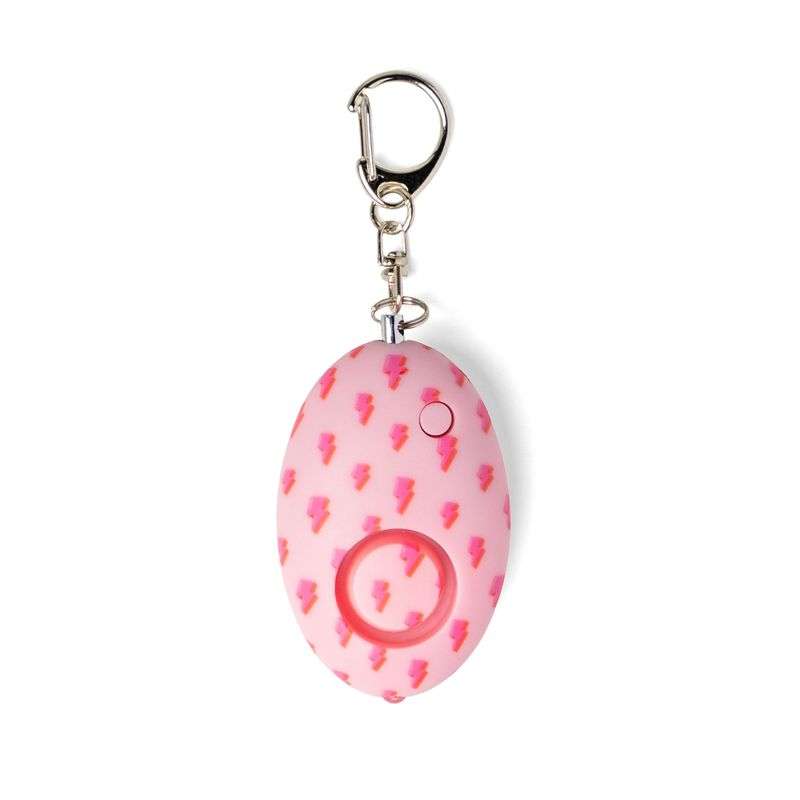 Deter danger wherever you go! This colorful personal safety alarm emits a 100-decibel sound and features a push-button LED flashlight. Includes lobster claw clip for easy attachment.