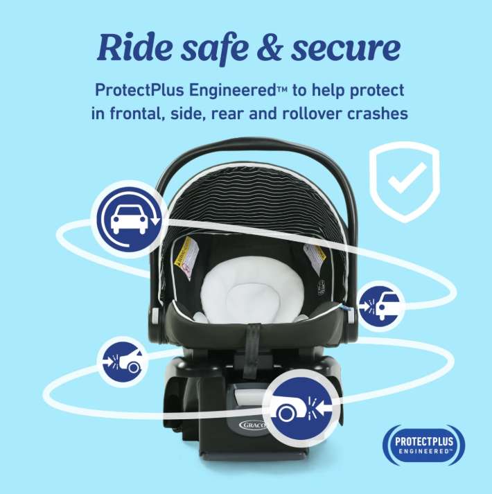 The lightweight Graco SnugRide 35 Lite LX Infant Car Seat has a two-piece infant head and body supports keep baby snug and comfortable as he or she grows. The SnugRide 35 Lite LX car seat installs easily using the vehicle seat belt or LATCH. It features a rotating canopy to keep baby comfortable and shaded in all environments.