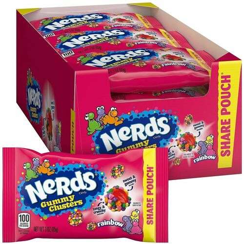 Nerds Gummy Clusters blend crunchy mini Nerds with sweet gummy centers. Rainbow flavors like strawberry, grape, orange and lemonade create an irresistible, addictive treat.