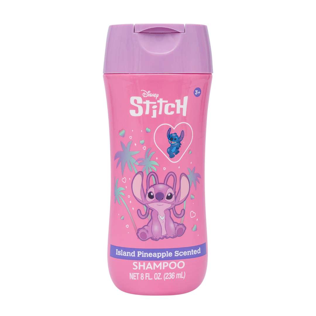 The kids' Disney Stitch shampoo brings fun and freshness to bath time! These 8 oz bottles, with a tropical island pineapple scent, gently cleanse hair while leaving it soft and refreshed.