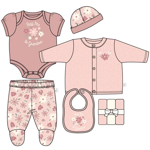 9pc Take Me Home Set provides newborns with coordinated essentials for coming home. This thoughtful package supports personal use, gifting, or donating to organizations or small businesses aiming to help families in need. Easy to order in bulk, it is a versatile, practical option. Shop in bulk and save today!