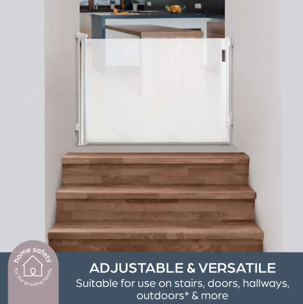 Glide N' Hide Retractable Gate offers reliable protection in a sleek, white design. Its retractable style makes it suitable for personal homes, nonprofit facilities, or small businesses needing safe spaces. This gate is also a thoughtful contribution to local charities or community centers. Improve safety and enhance peace of mind. Shop in bulk and save today!
