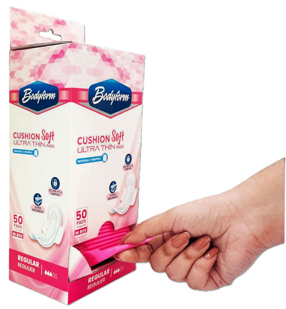 The ultra-thin regular maxi pads with wings are individually wrapped and come in cardboard disposable dispenser. There are 50 pads per dispenser and are perfect for schools, clinics, offices, and more where there is not a fixed dispenser. Buy in bulk and save!