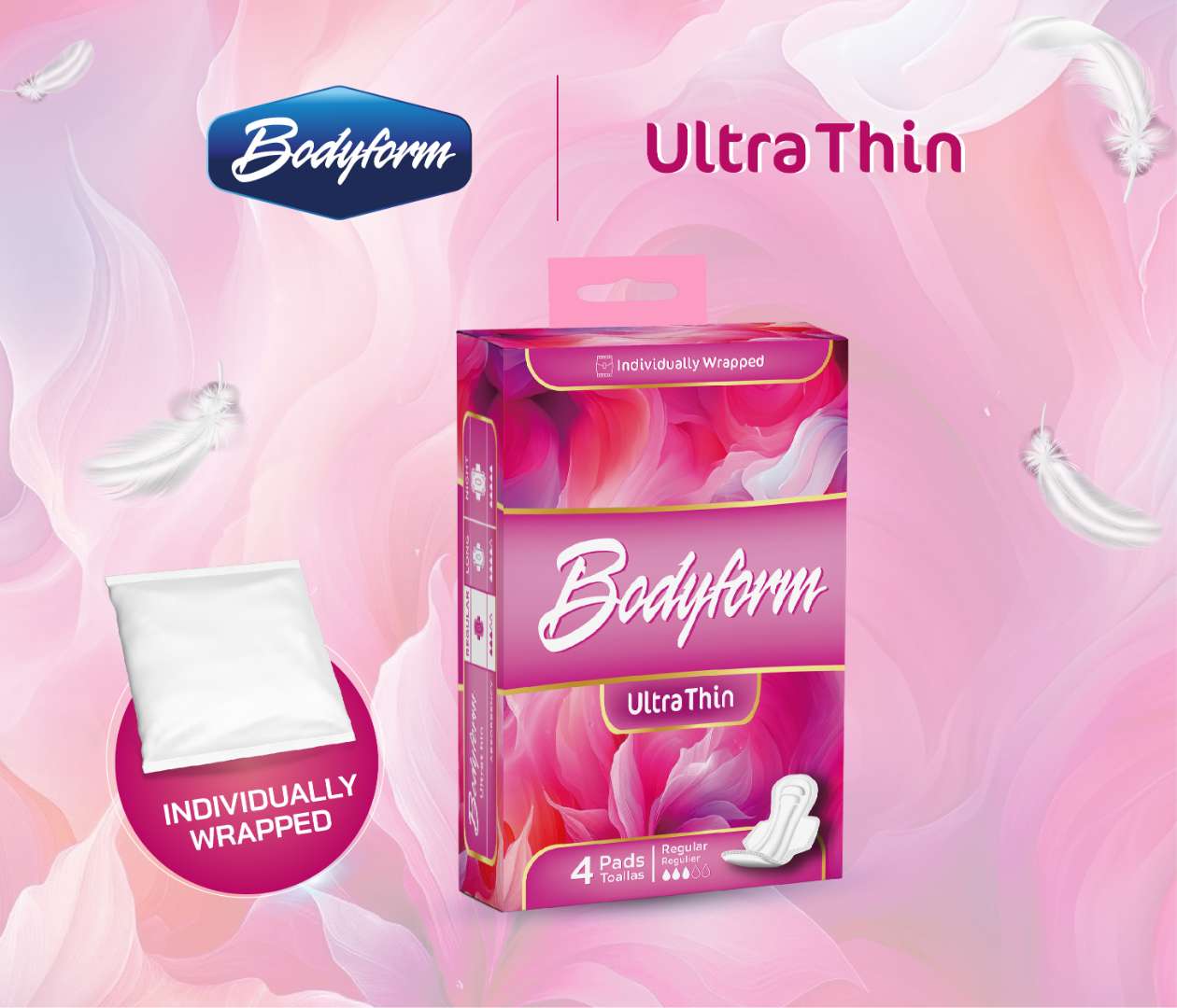 - Ultra-thin regular maxi pad with wings