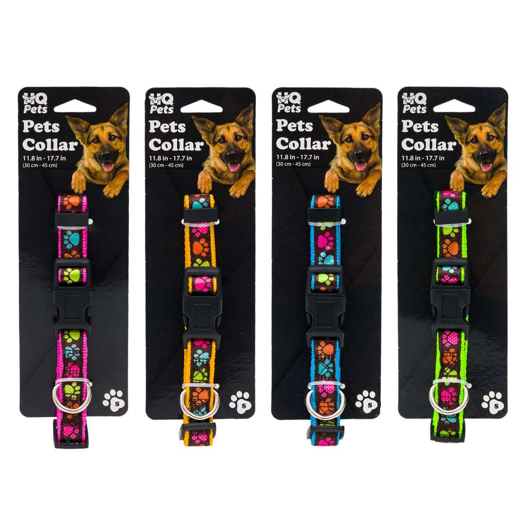 - Lightweight collar with playful paw print pattern for pets