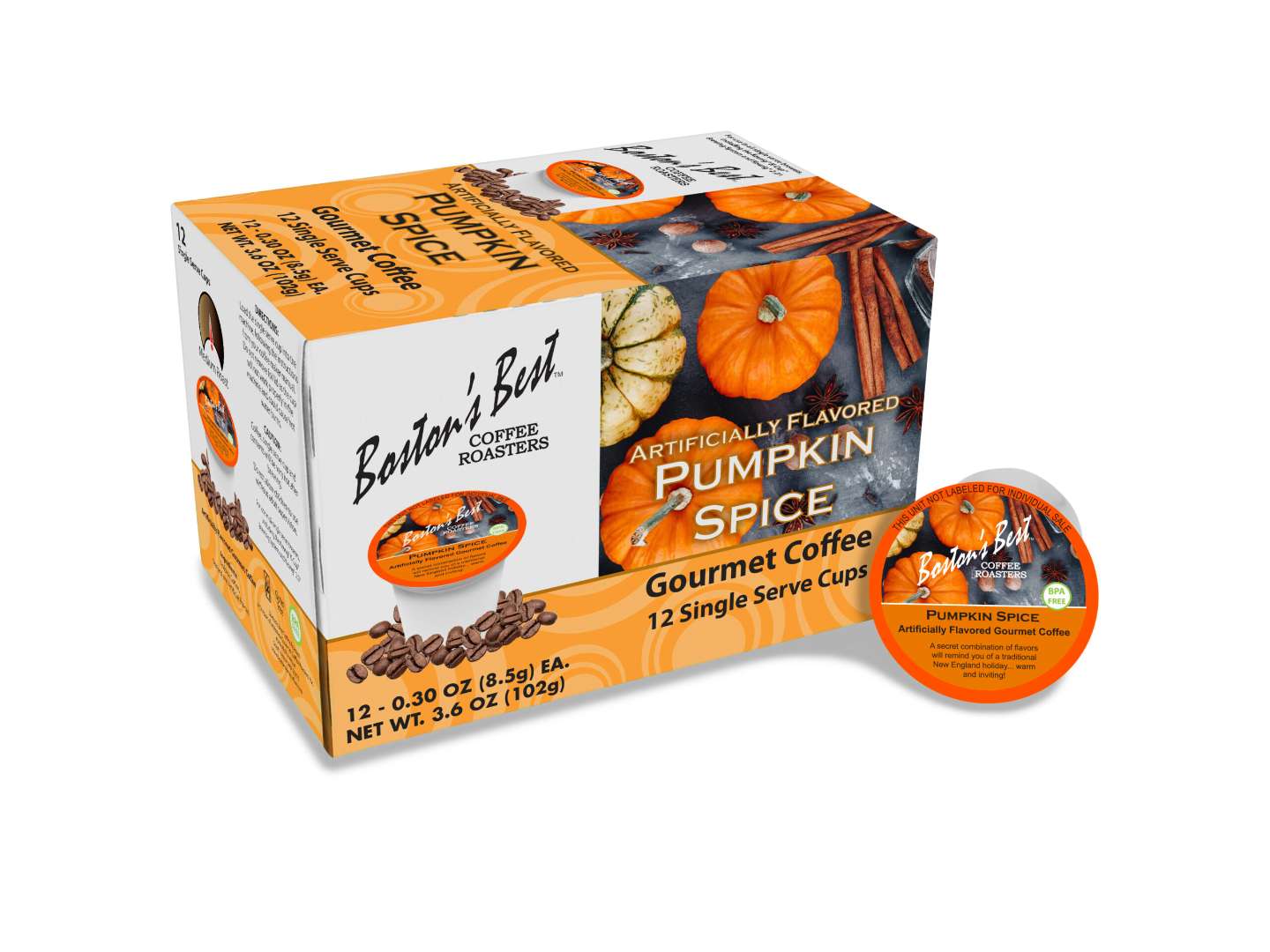 Pumpkin Spice blends rich medium roast coffee with a warm hint of seasonal spice. A cozy, inviting flavor inspired by traditional New England holidays--perfect for anytime enjoyment.