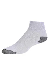 This men's quarter sock is ribbed above the ankle to provide comfortable all-day wear. The soft and breathable sport socks are made of a cotton/polyester/elastic blend to fit you well.
