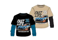 Double sleeved t-shirts are a great addition to any boy's closet! The fun 'Fast Lane' design with dual-colored shirts provide a stylish and fun option for a cooler day! Shop our boys' t-shirts for all your donation needs.