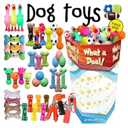 Versatile selection of quality dog toys, ideal for shelters, selling at retail businesses, or charitable gifting. Each assortment features a convenient display for easy access and organization. Shop in bulk and save today!