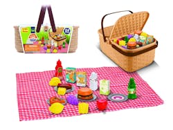 Each playsets includes burgers, fries, hot dogs, fruit, drinks, condiment bottles, and a red-and-white checkered picnic mat for setup. Buy in bulk and save!