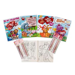 Valentine coloring books are a fun activity for kids. They come in a pack with four assorted coloring books and four six-count pack of colored pencils. Buy in bulk and save!