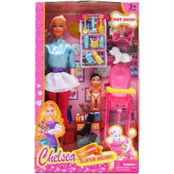 The Chelsea Super Mom fashion dolls do it all! With the baby and pet accessories kids will have hours of imaginative play.