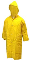 Stay dry with this yellow PVC/polyester raincoat! Each raincoat features a detachable hood, waterproof design, snap-front closure, and calf-length for full coverage. Shop rain gear in bulk at DollarDays!