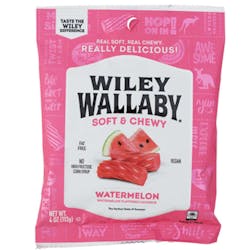 Experience the rich, intense flavor of Wiley Wallaby Watermelon Licorice. Each chewy piece is a pure licorice indulgence that's perfect for candy lovers.