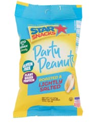 Star Snacks Party Peanuts, roasted and lightly salted for a crunchy, flavorful snack. Gluten-free, keto-friendly, and packed with plant-based protein. Perfect for any occasion!