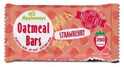 Strawberry Soft Oatmeal Bars, 2.4 oz. Whole grain, nut-free, and individually wrapped. Meets USDA 2 oz grain equivalent. No preservatives, all-natural flavors, 180-day shelf life.