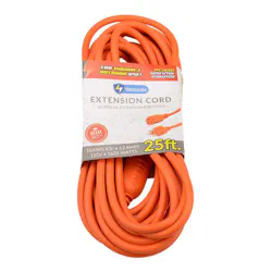 The 25-foot indoor and outdoor extension cords can be used for providing power for the home, yard, power tools, lights, and more. Extension cords are also great for emergencies and disaster relief efforts. Buy in bulk and save!