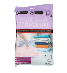 Vacuum Space Saver Storage Bags provide an efficient way to create more room for clothing, bedding, or seasonal items. Each set features a large, protective bag with airtight, watertight seals to block moisture, dust, and insects. Perfect for maximizing storage during re-homing or organizing projects.