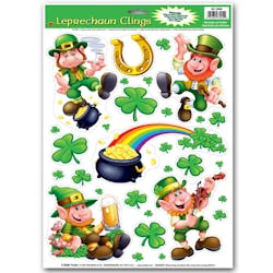 Decorate your windows or mirrors with a scene straight from an Irish fairy tale! These leprechaun and shamrock clings are an easy way to decorate anywhere. Buy in bulk and save!
