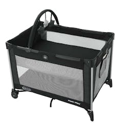 - Features folding feet and wheels for 20% more compact fold than other Graco playards