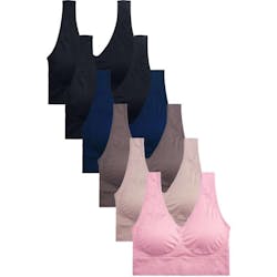 Go the distance in this performance-ready sports bra. With a seamless design that lends a smooth shape and comfortable silhouette no matter the workout, the removable cups also allow you to customize your coverage for perfect, maximized support. Nylon/spandex. Removable pads. U-shape silhouette to wear with multiple necklines. One size fits most. Available in multiple colors. Color: Assorted Size: Free Plus size Material: 90% nylon 10% spandex 6 Bras per Pack