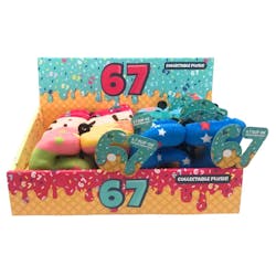 Designed with bold colors and fun, dessert-inspired patterns the 6-7 clip on plush have an instantly recognizable design that taps into a playful pop-culture moment. They attach easily to backpacks, totes, keys, and accessories. Buy in bulk and save!