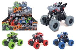 The jumbo wheel off roader has four-way spring suspension and comes in a variety of colors and designs. These trucks provide hours of off roading fun for kids. Buy in bulk and save!